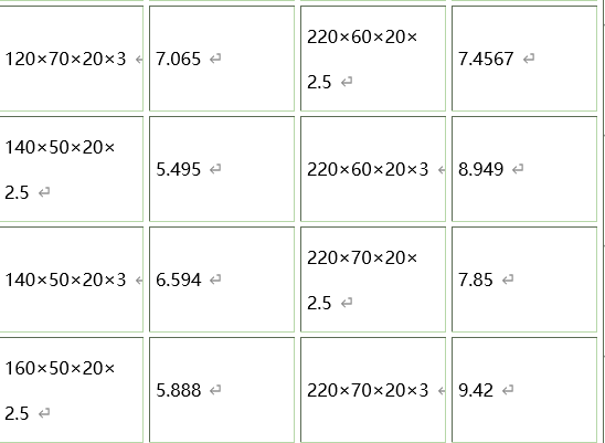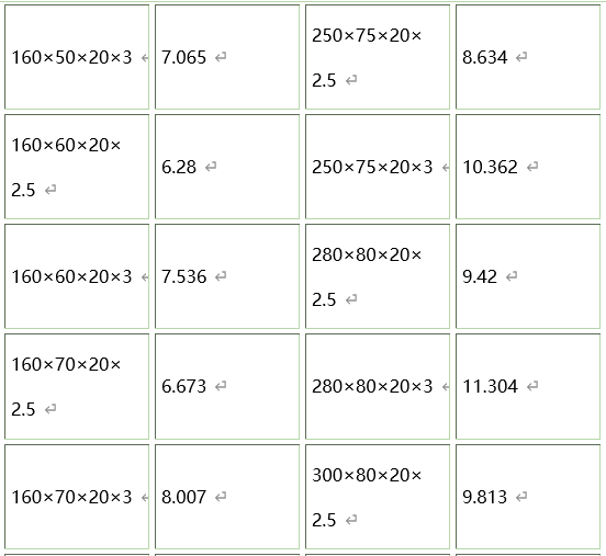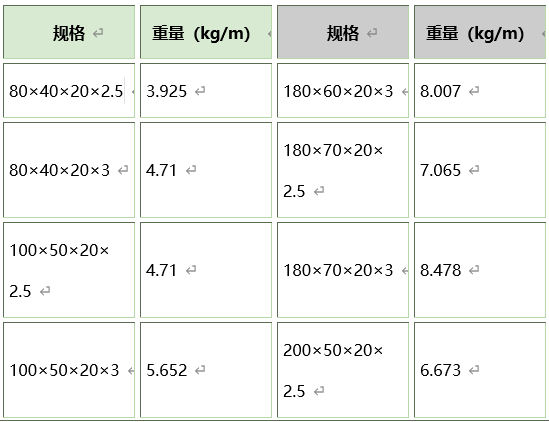 各行數(shù)字含義(以C80×40x20×2.5為例):